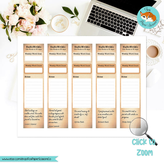 NaNoWriMo Planning Stickers | Printable Weekly Dashboard for NaNoWriMo